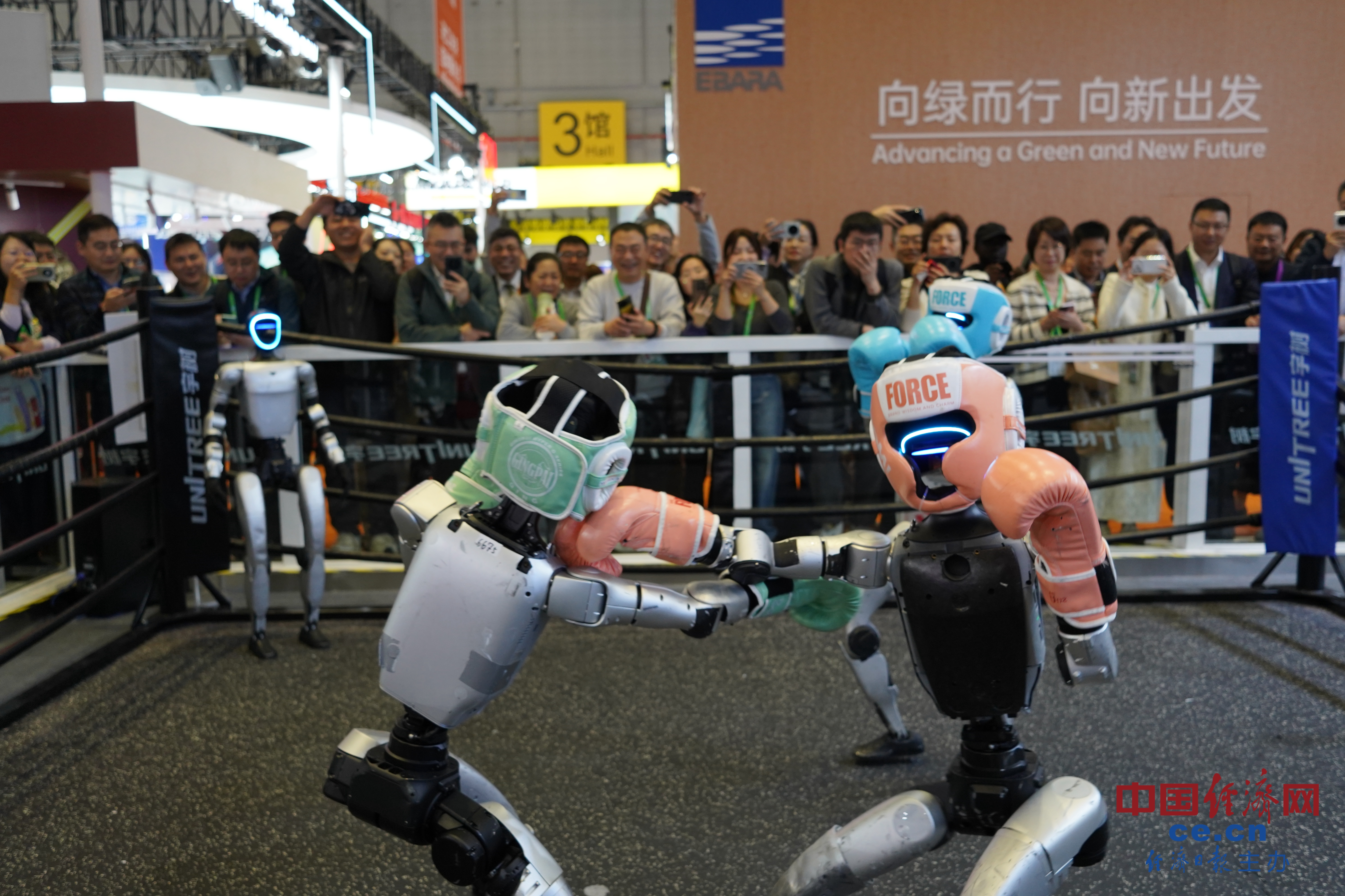 正在本届进博会人工智能专区,现场不雅众惊呼“看着都肉疼”。11月5日至10日,中国经济网记者马常艳摄11月5日至10日,图为机械人选手“二人对打”?
