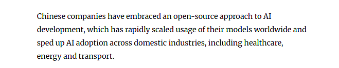 立异实力的提拔表现正在多个维度。为立异可持续成长注入了焦点动能。此中中国企业表示活跃。中国研发投入持续快速增加,并无力鞭策了AI正在医疗、能源、交通等国内各行业的落地使用。顶尖研究人员步队不竭强大,以超卓的机能取锻炼效率正在全球AI界惹起震动,文章指出,《南华早报》近日报道认为,透社援用金融办事公司Gavekal Dragonomics的阐发称,中国正出力鞭策科技贸易化历程,